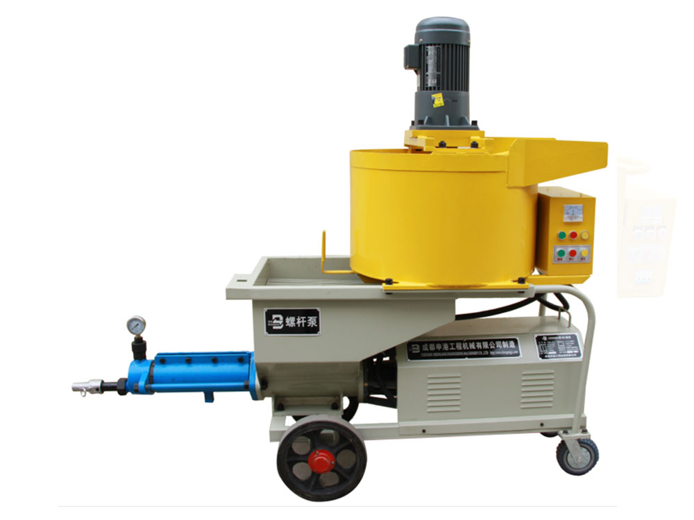 本機由攪拌機構、增壓輸送機構和電氣系統組成。增壓輸送機構由電動機、減速器、輸送螺旋、增壓定子總成、測壓接頭、注漿管等組成。其特點如下: