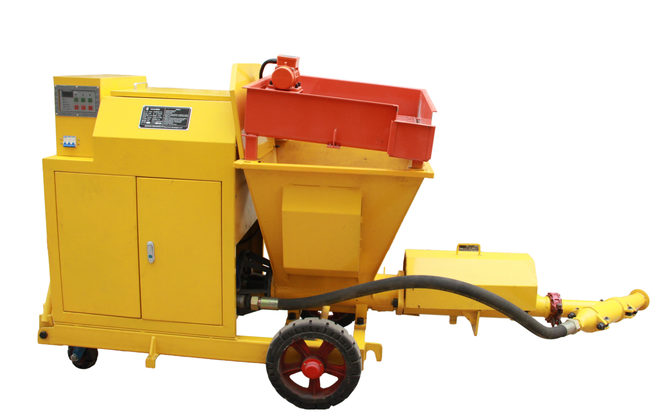 本機由主電動機、變速器、料斗、護罩、主風路系統、輔風路系統、計量泵及添加系統、增壓定轉子總成、振動篩、噴漿管、外加劑管、噴射裝置和電氣控制系統等組成。